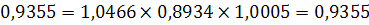 Далее определим общее изменение прибыли в относительном выражении путем расчета общего индекса прибыли: