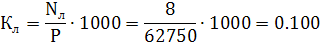 2. Определение коэффициента летальности Кл, показывающего число случаев с летальным исходом на 1000 работающих: