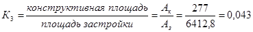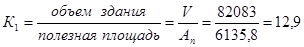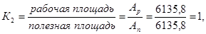 Технико-экономическая оценка объемно-планировочного решения · Площадь застройки Аз =6412,8 м2 . · Полезная площадь – сумма площадей всех помещений здания в пределах внутренних поверхностей за вычетом площадей лестничных клеток, шахт, внутренних стен, опор, перегородок. Ап =6135,8 м2 . · Рабочая площадь – сумма площадей помещений на всех этажах, антресолях, этажеркаж и т.д. Ар =6135,8 м2 . · Конструктивная площадь – сумма площадей сечений всех конструктивных элементов Ак =277 м2 . · Объем здания V=82083 м3 . По имеющимся показателям определяем коэффициенты, характеризующие объемно-планировочное и конструктивное решение здания: