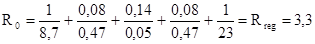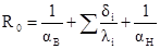 αв =8,7 Вт/(мּ˚с) – коэффициент теплопередачи внутренней поверхностиограждающей конструкции δi – толщина i-го слоя ограждающей конструкции λi – расчетный коэффициент теплопроводности i-го слояограждающей конструкции αн =23 Вт/(мּ˚с) – коэффициент теплопередачи (для зимних условий) наружной поверхности ограждающей конструкции Принимается в зависимости от градусо-суток отопительного периода, определяется по таблице 4 СниП (2) Dd =(tint -tht )×Zht , где(2) tint =16˚с – расчетная средняя t˚ внутреннего воздуха здания tht = -8,4˚с – средняя t˚ наружного воздуха Zht =221сут – продолжительность суток отопительного периода принимается по СНиП (3) для периода со средней суточной t˚наружного воздуха не более 8˚с Dd =(16+8.4)×221=5392,4˚сּсут, Интерполяцией по значениям таблицы 4 СНиП (2) принимаем значение Rreg = aDd + b=0.00035*5392,4+1.4=3,29 м2 °С/ Вт