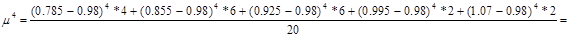 Побудуємо криву розподілу для показника коефіцієнт використання вантажопідйомності А = (0,98 – 0,89) / 0,51 =0,18 Оскільки А = - 0,18 , тобто А<0, то крива розподілу буде скошена вправо відносно осі ОХ. Для того, щоб розрахувати ексцес розрахуємо спочатку m4 та s4 :