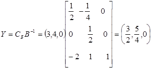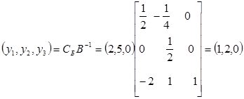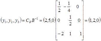 Для вычисления нового значения целевой функции сначала найдем значения двойственных цен.