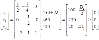 Полученное решение не является допустимым, поскольку теперь Базис В соответствии с двойственным симплекс-методом исключаемой переменной будет Базис По существу, оптимальное решение осталось неизменным. Это означает, что в данном случае «перенос» части фонда рабочего времени третьей операции в фонд рабочего времени первой операции не приводит к улучшению целевой функции. Интервалы допустимых изменений для элементов вектора Пусть в задаче о фабрике игрушек TOYCO нас интересует интервал допустимости для значения фонда рабочего времени первой операции. Заменим вектор