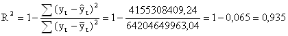 3,403<80,419, значит, уравнение регрессии незначимо. 2в. Проверим качество уравнения регрессии с помощью коэффициента детерминации по следующей формуле по данным таблицы 7(см. приложение 3):