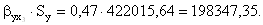 Если фактор х3 увеличить на Sx3 =422015,64, то результат изменится на
