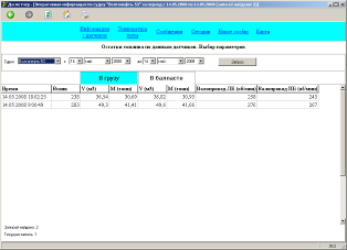 Рисунок 2.15 - Окно с сообщениями от экипажа судна «Волгонефть-53» С помощью элементов интерфейса можно задать период, за который требуется отобразить сообщения с судов. Аналогичным образом выводится информация с датчиков. Вид окна с данной информацией показан на рисунке 2.16.