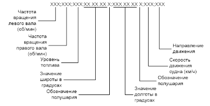Рисунок 2.19 - Структура форматированной строки с параметрами судна Как видно из рисунка 2.19, строка представляет собой последовательность информационных полей, разделённых разделителем. Такая структура позволяет достаточно просто произвести декодирование и запись значений полей в базу данных. Если письмо написано капитаном судна, то в тему письма автоматически подставляется название судна. При получении письма программа определяет тип письма: служебное или сообщение. В случае, если это письмо служебное, то производится обработка и запись в базу данных строки, содержащейся в теме письма. Если письмо содержит текст, написанный экипажем судна, то производится запись тела письма в базу данных. Если в почтовом ящике обнаружено постороннее письмо, то оно будет удалено. Программа позволяет задавать наиболее удобный режим обновления базы данных. Вид окна программы представлен на рисунке 2.20.