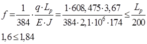 Условие выполняется. 3. По допустимости прогибов: