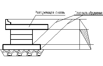 Грунтовое ядро. Ядро относительно оси плотины размещают по следующим схемам (рис. 5.21). Смещая ядро в сторону верхнего бьефа или делая его наклонным, можно повысить устойчивость низового откоса в связи с уменьшением фильтрационной силы и увеличением объема сухого грунта, для которого сдвиговые характеристики будут больше. Верх ядра располагают выше ФПУ, чтобы исключить перелив воды через него; одновременно должно быть обеспечено расстояние от гребня плотины до верха ядра больше глубины промерзания. Минимальный размер ядра поверху назначают из условия производства работ, но не менее 0,8 м, а понизу, на уровне кривой депрессии за ядром, определяют по формуле: