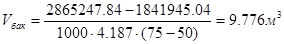 Qmax =1023283.52кДж/ч Объем бака-аккумулятора в системе горячего водоснабжения при постоянной температуре воды рассчитывается по формуле: