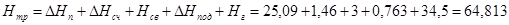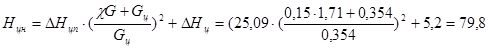 где D H п - потери напора в подающих трубопроводах системы горячего водоснабжения (25,09 м); D H сч - потери напора в водомере, м; H св - располагаемый свободный напор у смесителя ванны (3м); D H под — потери в водоподогревателе, м; Нг — геометрическая высота подъема воды от оси трубопровода на вводе до оси наиболее высоко расположенного водоразборного прибора (34,5 м). Водомер подбирается по расходу воды на вводе G и диаметре условного прохода Dy по [2, табл. 4* или 7 прил. 15]. Потери напора в водомере D H сч (м), определяются по формуле: