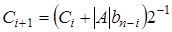 . Для даних чисел маємо: Відповідь : С = 0, 0101111100. Аналіз описаних методів множення і пристроїв, що їх реалізують показує таке. Тривалість процесу множення за першим і другим методами менше, ніж за третім і четвертим, за рахунок суміщення у часі операцій додавання часткових добутків і зсувів множеного. За кількістю апаратури перевагу варто віддати модифікованому пристрою, що реалізує третій метод множення. Пристрій, що реалізує перший метод множення виявляється дуже не ощадливим за кількістю необхідної апаратури. Крім того, розряди суматора НСМ використовуються неефективно: у початкових циклах множення старші розряди зайняті увесь час "додаванням" нулів, наприкінці множення на молодші розряди надходять з регістра РгА нулі, тобто ніяких корисних операцій вони фактично не роблять. Таблиця 3.6 - Приклад множення за методом 4 У той же час цей пристрій є вигідним з такої точки зору. До початку множення можна записати в суматор НСМ замість нуля яке-небудь інше число На підставі вищевикладеного можна вважати найбільш зручними для застосування в ЦОМ пристрої, які реалізують перший і третій методи множення, що і підтверджується практикою розробки обчислювальних пристроїв. 3.2.2. Метод скороченого множення Усі розглянуті методи множення забезпечують одержання добутку розрядністю 2п