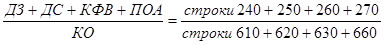 где ДС – денежные средства; КФВ – краткосрочные финансовые вложения; КО – краткосрочные обязательства. В состав краткосрочных обязательств входят: задолженность по краткосрочным кредитам и займам; кредиторская задолженность; задолженность участникам (учредителям) по выплате доходов; прочие краткосрочные обязательства. 2. Коэффициент критической ликвидности или «промежуточной ликвидности» рассчитывается по формуле:
