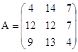 Теперь подставим вместо ni - полученные ранее равенства. y1 = 0,9· (x1 + x2 ) + 0,2· (x1 + x2 + x3 ) + 1,2· (x1 + x2 + x3 + x4 ) y2 = 6· (x1 + x2 ) + 6,5· (x1 + x2 + x4 ) + 6· (x1 + x2 + x3 ) + 2,5· (x1 + x2 + x3 + x4 ) y3 = 2,9· (x1 + x2 ) + 1,7· (x1 + x2 + x4 ) + 1,4· (x1 + x2 + x3 ) + 0,6· (x1 + x2 + x3 + x4 ) Приведем подобные y1 = 2,3x1 + 2,3x2 + 1,4x3 + 1,2x4, y2 = 21x1 + 21x2 + 8,5x3 + 9x4 y3 = 6,6x1 + 6,6x2 + 2x3 + 2,3x4 Проведем подсчеты для значений x1 = 50, x2 = 30, x3 = 120 и x4 = 80 y1 = 2,3 * 50 + 2,3 * 30 + 1,4 * 120 + 1,2 * 80 = 448 кв. м. y2 = 21 * 50 + 21 * 30 + 8,5 * 120 + 9 * 80 = 3420 кв. м. y3 = 6,6 * 50 + 6,6 * 30 + 2 * 120 + 2,3 * 80 = 952 кв. м. Задание 2Пусть aij - количество продукции j, произведенной предприятием i, а bi - стоимость всей продукции предприятия i исследуемой отрасли. Значения aij и bi заданы матрицами A и В соответственно. Требуется определить цену единицы продукции каждого вида, производимой предприятиями отрасли. В ходе выполнения задания необходимо составить систему уравнений, соответствующую условиям, и решить ее тремя способами (матричный метод, метод Крамера, метод Гаусса).