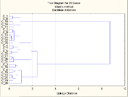 Рис. 3.37. Результати кластерного аналізу Відстань Махаланобиса є мірою відстані між двома точками в просторі, визначуваним двома або більше корельованими змінними.