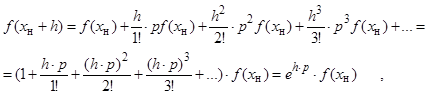 h – шаг по оси действительной переменной Из равенства операторов сдвига, выраженных через p