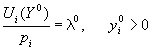 : Они представляют собой предельные полезные эффекты (предельные полезности) соответствующих потребительских благ и показывает на сколько единиц увеличивается целевая функция потребления при увеличении использования i- гоблага (товара) на некоторую условную «малую единицу». Необходимыми условиями того что вектор Y0 будет оптимальным решением, является условия Куна-Таккера: