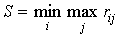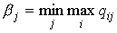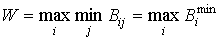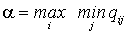 минимален. Обычно минимальные числа в каждой строке обозначаются Они обозначают минимально-возможный выигрыш игрока А при соответствующей стратегии Аi