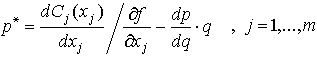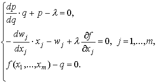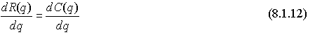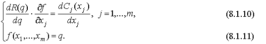 Сумма, стоящая в правой части равенства (8.1.8), есть предельный доход (см. (8.1.4)), а сумма, стоящая в правой части (8.1.9), - предельные издержки по производственному фактору j-го вида (см. (8.1.6)). Поэтому величина, стоящая в левой части (8.1.9), представляет собой произведение предельного дохода ( Исключая из системы необходимых условий множитель Лагранжа