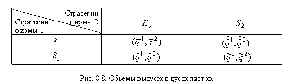 Олигополия. На практике рыночной властью, т.е. властью над ценообразованием, обладают не только фирмы, являющиеся чистыми монополистами. Во многих отраслях экономики конкурирует небольщое число фирм, каждая из которых обладает некоторой рыночной властью. Таковы, например, крупные металлургические комбинаты России (КМК, Запсиб, Магнитка и др.). В этом и следующих параграфах мы изучим рыночные механизмы в условиях олигополии, т.е. когда на рынке товара конкурирует небольшое число фирм. Рыночная власть и прибыль олигополистов частично зависят от того, как они взаимодействуют между собой. В некоторых олигопольных отраслях фирмы агрессивно конкурируют, а в других сотрудничают. Естественно, конкуренция приводит к снижению цен, а имея тенденцию к сотрудничеству, фирмы могут назначить цены выше предельных издержек и получить большую прибыль. Крайнюю форму сотрудничества представляет собой картель. На картельном рынке некоторые или все фирмы вступают в сговор по поводу захвата рынка. Определяя сообща цены товара и объемы продаж, они максимизируют свои прибыли. Картель отличается от монополии тем, что не может контролировать весь рынок товара по причине наличия фирм, не входящих в картель. Другая причина отличия - в нестабильности картеля как структуры, состоящей из фирм, преследующих каждая свои интересы. Олигополия является преобладающей формой современной рыночной структуры. На олигопольных рынках несколько фирм производят всю или почти всю продукцию. Чем шире олигополия, тем сложнее принятие экономических решений для фирм. Поэтому они могут предпринять стратегические усилия, чтобы затруднить вступление на рынок новых фирм. Олигополист принимает решение по установлению цены и объема выпускаемой им продукции. Экономическое решение олигополиста складывается сложнее, чем монополиста, так как имеет место конкуренция между несколькими фирмами. Поэтому фирма должна тщательно взвесить свои решения с точки зрения реакции соперников. Стратегические соображения должны быть глубокими и всесторонними. Каждая фирма учитывает реакцию конкурентов, зная, что те, в свою очередь, тоже будут взвешивать ее реакцию на их собственные решения. При этом фирма должна принимать во внимание возможность восстановления ее стратегических рассуждений конкурентами, и потому она должна поставить себя на место конкурентов и поразмыслить, какова бы была их реакция. Именно с позиций такой рекомендации разрабатываются принципы оптимального поведения олигополистов. Некоторые из них мы рассмотрим в следующих параграфах. Здесь мы займемся моделированием задачи олигополиста и олигопольного рынка в целом. Определяющим свойством олигопольного рынка является то, что все конкурирующие фирмы могут влиять на цены продукции и затрат. Следовательно, прибыль каждой фирмы зависит и от экономических решений всех остальных фирм. Каково будет в этих условиях оптимальное решение олигополиста по объему выпуска и цене товара? Для получения ответа на этот вопрос необходимо построить математическую модель олигополиста и решить совместно систему, состоящую из задач всех конкурирующих между собой фирм. Обозначим через n число олигополистов и предположим, что все они выпускают один и тот же товар, применяя m видов затрат. Заметим, что при этом продукции разных фи