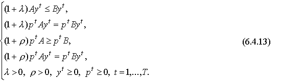 где В случае сбалансированного снижения цен последовательность Подставляя (6.4.10) и (6.4.12) в модель Неймана (6.4.8), получаем ее "стационарную" форму: