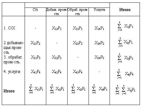 По вертикали отражаются счета наступлений (покупок), а по горизонтали счета выпуска (продаж).[метка3] Из этой модели в идеале можно получить следующие виды равновесия: 1. отраслевое равновесие Напр., для отрасли (1):