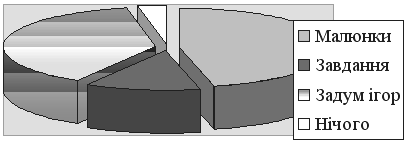 Діаграма 1. На запитання “Що вам найбільше запам’яталось з ігор, у які ви грали”, голоси учнів розприділились наступним чином (див. діаграму 2).
