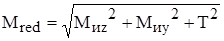 где Ми z , Миу – изгибающий момент соответственно в горизонтальной и вертикальной плоскостях, Н∙м. Учитывая условия прочности σ = Mred / W ≤ ≤ σadm , где W = 0,1 d3 – момент сопротивления поперечного сечения вала диаметром в относительно нейтральной оси, определим диаметр вала, который будет равен
