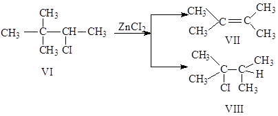 3.Побочные реакции. Перегруппировка Демьянова может сопровождаться образованием олефинов за счет отщепления протона от карбониевых ионов (V), (VI) или (VII):