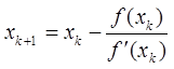 Таким образом, если нам известно приближенное значение корня уравнения, то полученное уравнение позволяет его уточнить. Понятно, что процесс уточнения можно повторять многократно, до тех пор, пока значение функции не будут отличаться от нуля на величину меньшую, чем заданная точность поиска. Очередное k-е приближение находится по формуле