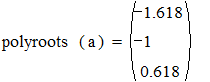 4 Нахождение корней полиномовДля нахождения корней полиномов имеется встроенная функция polyroots(a). Аргументом функции является вектор коэффициентов полинома
