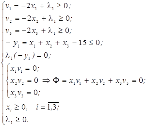 = где ckj - элементы матрицы С ; dk - элементы вектора d ; bi - элементы вектора свободных членов b ; aij - элементы матрицы А ; λi - коэффициенты Лагранжа. Необходимые и достаточные условия оптимальности решения х* принимают вид vj