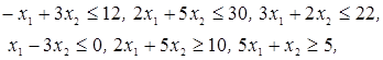 xj vj =0, xj ≥0, (j =1,...,n ), (19) λi (-yi ) =0, λi ≥0. (20) Равенства (17), (18) образуют систему n+ m линейных уравнений с 2 (n+ m ) неизвестными x1,…, xn , v1 ,…, vn , λ1 ,…, λm , y1,…, ym . Решения этой системы, при которых выполняются равенства (19), (20), дают координаты седловой точки (х*, λ* ). Соответственно n координат х* дают оптимальное решение задачи (15). 2. Порядок выполнения лабораторной работыПостроить допустимую область задачи и линии уровня. Записать функцию Лагранжа и необходимые условия экстремума, из которых аналитически или используя прикладные пакеты найти условно-стационарные точки. Для каждой точки указать активные и пассивные ограничения. Проверить выполнение достаточных условий экстремума в найденных стационарных точках. Найти глобальный минимум функции. Используя критерий (утверждение 1), проверить, что найденная точка является седловой точкой функции Лагранжа. Проверить справедливость оценки (9), решив задачу при положительных и отрицательных малых значениях приращения ∆b . Решить задачу квадратичного программирования методом седловой точки. Для этого записать систему (17) - (18), найти ее решения, удовлетворяющие условиям (19) - (20). 3. Пример выполнения лабораторной работыМинимизировать нелинейную функцию