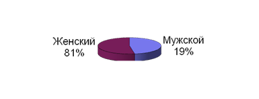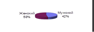 Рисунок 2 - Распределение потенциальных абитуриентов по признаку пола с. Чёрныш Здесь же мы можем наблюдать, что девушек значительно больше, чем юношей, разница составляет 62%. 1.3