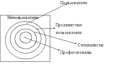 Рисунок 2 -Распространение информации. Поле, на котором располагается самая внешняя окружность, - это “территория”, соответствующая общему населению Астаны и Акмолинской области. Самая внешняя окружность соответствует общему числу пользователей. Следующая окружность соответствует кругу людей, являющихся продвинутыми пользователями - энтузиастами применения информационных технологий. Третья окружность описывает число людей - специалистов, которые знают, как пользоваться услугами АО «Алма-ТВ». Центральная окружность представляет людей-профессионалов, чья жизнь и зарплата зависят от компьютерной техники. В основном это сотрудники информационных отделов и управлений различных организаций. Эти люди настоящие эксперты, они знают рынок информационных технологий и почти мгновенно вырабатывают решение о любых товарах, услугах и фирмах, которые представлены на этом рынке. Для того, чтобы быстро и эффективно распространить информацию о товаре, услуге или фирме, следует заронить ее в самый центр системы, а дальше она распространится сама собой - как круги по воде. Именно так поступает фирма АО «Алма-ТВ», проводя коммуникативную политику, направленную в первую очередь, на профессионалов, работающих на рынке информационных технологий. Для привлечения их внимания фирма использует следующие мероприятия: - организует выставки и презентации, где специалисты могут увидеть товар в действии, получить ответы на интересующие вопросы относительно его технических характеристик, ознакомиться с рекламными проспектами, завязать прямые контакты с представителями фирмы; - ведет семинарскую деятельность (в том числе участвует в семинарах сторонних организаций и фирм). Однако, учитывая двухуровневую систему принятия решений о закупках в организациях, мало показать техническим специалистам достоинства предлагаемых товаров и услуг. Необходимо еще убедить руководителя предприятия-заказчика в надежности и компетентности фирмы-поставщика. А так как для руководителей предприятий основным критерием надежности часто является известность фирмы, то для достижения узнаваемости и создания благоприятного образа фирма АО «Алма-ТВ» проводит следующие мероприятия: - установка информационных и рекламных щитов в центре города; - размещение информационных и рекламных материалов в отраслевых периодических изданиях на корпоративной основе; - разработка фирменного стиля. В целом, для продвижения своего товара – услуг кабельного телевидения, цифрового интернета, фирма АО «Алма-ТВ» использует канал личной коммуникации, считая его наиболее действенным и эффективным при работе с корпоративным заказчиком. При этом, она использует наиболее качественный подход, учитывающий и удовлетворяющий персональные потребности каждого отдельного потребителя. Прежде чем предложить свои услуги той или иной организации, фирма АО «Алма-ТВ» собирает все необходимые сведения (наличие компьютерных сетей и их состояние, проблемы, возникающие при эксплуатации и возможности их устранения, финансовое состояние организации и так далее). Затем, если выявлены какие-либо недостатки, то разрабатывается проект модернизации сети, а также рассчитываются затраты на его реализацию. Только после этого опытный агент по продажам предлагает уже готовый проект компьютерной сети, 
