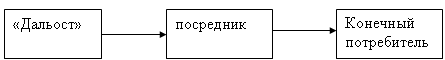 Основная причина убытков 1996 года – создание больших запасов.. Показатели скорости оборота капитала. К1 К2 1996 и 1997 г.г. свидетельствуют о затоваренности компании в 1996 г., что привело к неспособности компании выполнять свои обязательства по краткосрочным обязательствам и убыткам. В 1997 г. Компания наоборот уменьшила нормы запасов (ниже нормы » 80%), получила прибыль. Однако создало проблему своевременного пополнения запасов. Показатели 1998 г. К1=86,7% и К2=98% - показывают, что компания вновь увеличила товарные запасы, что сказывается на экономических показателях. Показатели хозяйственной деятельности свидетельствуют о снижении эффективности управления предприятием в 1998 году (показатель рентабельности), снижение данного параметра так же показывает падение спроса на продукцию компании. В основе падения спроса лежат ценовые факторы. Низкая норма прибыли характеризует неприемлемость существующих цен для стимуляции спроса и неэффективности производственного цикла. Резкий скачек цен и наличие запасов товара обеспечило резкий рост оборота капитала. Каждый рубль обеспечил в 1998 году сбыт на 43,8 руб. В тоже время убытки (1996 г.) не позволяют компании изменить структуру капитала, которая демонстрирует, что предприятие вышло за пределы финансовой устойчивости. Платежеспособность низка, возможен риск банкротства. Запас финансовой прочности ниже нормы, что свидетельствует о том, что конкурентоспособность, обеспечивающаяся за счет снижения цены, достигает максимальных возможностей использования данного подхода. Рост издержек обращения связан с резким скачком цен на рынке. Компания с данными показателями относится к категории низкой платежеспособности средним показателе хозяйственной деятельности (уровень рентабельности, оборот капитала). 2.2 Анализ и оценка поведения фирмы на рынке Стратегия коммерческого поведения на рынке определяется ген. директором совместно с коммерческим директором, реализуется коммерческим директором. При определении стратегии коммерческого поведения принимаются во внимание следующие факторы: 1. характеристика товара, поставщики; 2. позиции компании на рынке; 3. конкуренты, их позиция, политики действий; 4. характеристика потребителя; 5. состояние сбыта (динамика). Менеджмент предприятия, исходя из характеристики товара, собственных подходов, структуры компании в основу своей деятельности положил сбытовой подход. Схема сбыта отображена на рис. 2.2: Рис. 2.2 Схема сбыта