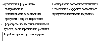 Следовательно, основной источник информации для крупных и средних оптовиков – это специальные издания, значительную долю составляет DM. Компания, используя «Товары и услуги» как рекламоноситель, достигает цели информирования потенциального клиента. Вместе с тем, ряд фирм использует DM, чему компания «Дальопт» внимание не уделяет. Покупатели малого опта получают информацию из прессы, радио, наружной рекламы и знакомых. Последний источник подтверждает необходимость активной работы с клиентом, используя организацию торговли, а также методы SP и ЛАС. Анализ показывает, что выбор «ПВ» как рекламоносителя ошибочный. Большинство покупателей получают информацию в «ТОЗе», «Презенте», «Из рук в руки», тем самым происходит неэффективное расходование средств. Таким образом, для эффективности использования данного элемента МК необходима стратегия рекламной деятельности, организация и планирование рекламных компаний. Остальные элементы МК – PR и DM компания не использует. Таким образом, с позиций конкурентоспособности и достижения целей сбыта, эффективность системы МК возможно характеризовать следующим образом: 1. компания достаточно эффективно использует продажу и SP, имеет ряд преимуществ по SP перед конкурентами; 2. использование продажи, SP на основе исследований торговой деятельности обеспечивают получение прибыли, определенной стабильной деятельности, но не обеспечивают роста; 3. реклама используется не эффективно, основная причина – отсутствие организации и планирования рекламной деятельности. Реклама не обеспечивает достижение целей сбыта; 4. PR и DM не используются; 5. таким образом, система МК и комплексное использование элементов МК отсутствует, и, как следствие, система ФОССТИС, формирующая спрос и ориентацию потребителя, т. е. выполняющая активную роль маркетинга, не эффективна, что и является основной проблемой достижения целей предприятия. 3 Повышение эффективности системы стимулирования сбыта в фирме 3.1 Совершенствование организации маркетинга в фирме Повышение эффективности системы стимулирования деятельности компании «Дальост» невозможно без совершенствования всей коммерческой деятельности и, прежде всего, полной ориентации ее на маркетинговую деятельность. Финансовое состояние компании не позволяет кардинально изменить ее организационную структуру, те более, что данная структура в целом решает стоящие перед ней задачи. Сущность изменений должна коснуться переориентации деятельности на маркетинг. Анализ коммерческой деятельности показал, менеджмент использует функции маркетинга (аналитическая, сбытовая, формирование системы ФОССТИС, формирование товарного предложения на основе исследований торговой деятельности и так далее). Однако система маркетинга на фирме отсутствует, что приводит к неадекватным в ситуации решениям. В связи с этим, автор предлагает следующее: 1. распределение функций на основе маркетингового подхода оставить без изменений, так как в целом они отвечают целям и функциям маркетинга; 2. за основу принять модель – программу маркетинговой деятельности фирмы. (рис 3.1). 3. исходя из ситуации на рынке и показателей хозяйственной деятельности, компании целесообразно привести в соответствие цели коммерческой деятельности и ситуацию. Цели коммерческой деятельности соответствуют интере
