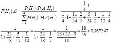 1) По формуле Бейеса апостериорная (после опыта) вероятность того, что шар был вынут из первой урны, равна: