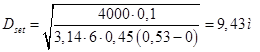 Где Hset – рабочая глубина отстойника, м; аi – доза активного ила в аэротенка, равная 3,6г/л; at – требуемая концентрация в осветленной воде, не менее 10 мг/л; Kss – коэффициент использования объема зоны отстаивания, равный 0,4; Ii – иловый индекс, равный 80 см3 /г [7].