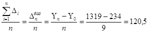 Динамический ряд представляет собой ряд последовательных уровней, сопоставляя которые между собой можно получить характеристику скорости и интенсивности развития явления. В результате сравнения уровней получается система абсолютных и относительных показателей динамики, к числу которых относятся абсолютный прирост, темп роста, темп прирос та, абсолютное значение одного процента прироста и пункты роста. Абсолютный прирост (∆i ) определяется как разность между двумя уровнями динамического ряда. При сравнении с постоянной базой он равен: ∆i баз = Yi – Y0 где∆i баз - абсолютный прирост базисный; У1 - уровень сравниваемого периода; У0 - уровень базисного периода. При сравнении с переменной базой ∆i = Yi – Yi-1 Где ∆i - абсолютный прирост цепной; Yi-1 - уровень непосредственно предшествующего периода. Темп роста определяется как отношение двух сравниваемых уровней. Пои сравнения с постоянной базой Тр= (Yi : Y0 ) * 100 При сравнении с переменной базой Тр= (Yi : Yi-1 ) * 100 Темп прироста показывает на сколько процентов уровень данного пе риода больше (или меньше) базисного уровня. Тпр= а также как разность между темпом роста (в процентах) и 100% Тпр = Тр – 100% Рассчитаем все показатели по ряду динамики, характеризующему объем индивидуального жилищного строительства. Данные расчета представить в таблице: Таблица 6 - Показатели по ряду динамики
