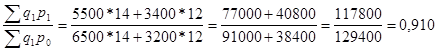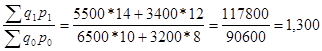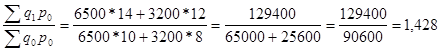 = Количество проданного товара отчетном периоде было продано больше на 42,8%, чем в предыдущем. Теперь рассчитаем общий индекс товарооборота: Jpq