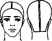 Рис.6. Деление волос на зоны: 1— верхняя затылочная; 2 —нижняя затылочная; 3 —теменная; 4 — височная;