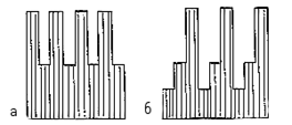 Затем эти прядочки срезают через одну, получая как бы выщип на одном или на разных уровнях (рис. 27 а, б). Такую филировку можно делать на глазок, не соблюдая четкого расстояния между прядками и уровнями их среза (рис. 28).