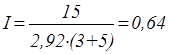 S - площадь помещения, S = 15 м2 ; h - расчетная высота подвеса, h = 2.92 м; A - ширина помещения, А = 3 м; В - длина помещения, В = 5 м. Подставив значения получим: