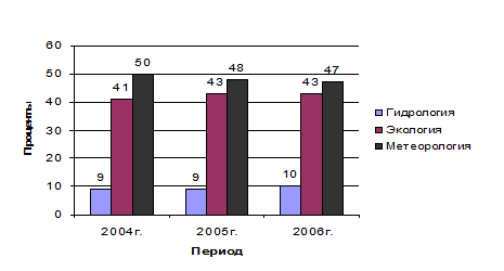 Доход предприятия постоянно увеличивается. Наибольшую долю дохода приносят услуги за метеорологические данные (47-50%%). Таблица 22 Динамика структуры затрат по направлениям деятельности