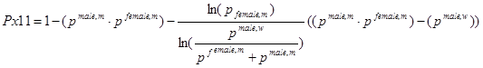 В данном случае вводятся четыре различные интенсивности смертности: μmale,m , μfemale,m , μmale,w , μfemale,w , Расчет вероятностей переходов в рамках модели с использованием интегральной формулы полной вероятности дает следующий результат: