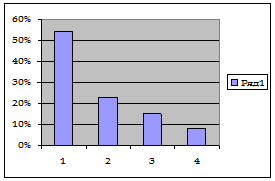 рис.7 где, 1 - человек - человек; 2 - человек - техника; 3 - человек - природа; 4 - человек - знаковая система; 5 - человек - художественный образ среди старшеклассников, обучающихся в профильном классе с физико-математическим уклоном: 54% (7 человек) - человек - техника 23% (3 человек) - человек-человек 15% (2 человека) - человек - природа 8% (1 человека) - человек - художественный образ (рис.8)