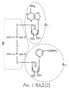 Молекула НАД (рис. 1) состоит из двух мононуклеотидных единиц – аденозин-5¢-фосфата (см. рис. 1, А1
