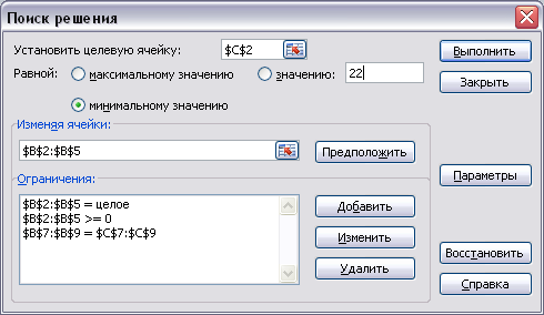 Рішення засобами Excel
