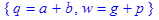 Бывает, что при решении систем уравнений ответ получается в виде множества уравнений, в которых левая часть является неизвестной переменной. Чтобы присвоить найденные значения переменным, относительно которых решалась система, следует применять команду assign(). Эта команда присваивает переменным, стоящим в левой части уравнений из множества решений, значения, равные правым частям. Можно сказать, что эта команда заменяет знак равенства (=) на знак операции присваивания (:=) во множестве, состоящем из уравнений, в которых левые части представлены неизвестными: > {q=a+b,w=g+p};